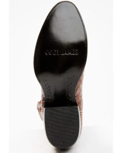 - Brown exotic alligator vamp with brown leather shaft